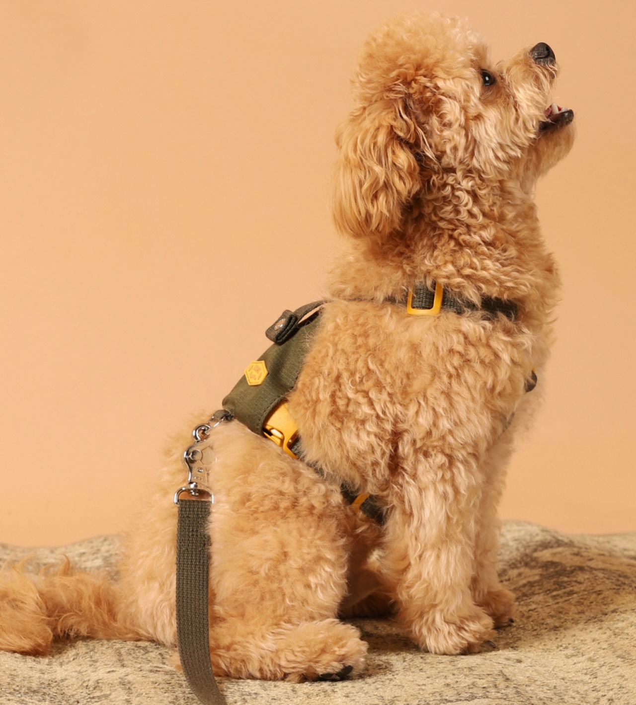 主張しすぎないミニマルな表情で、どんなハーネスやカラーにも自然にマッチ。